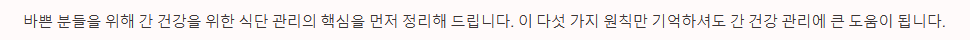 바쁜 분들을 위해 간 건강을 위한 식단 관리의 핵심을 먼저 정리해 드립니다.