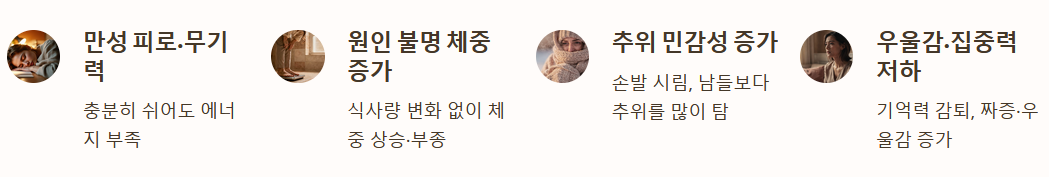 - 만성 피로 및 무기력감: 충분히 쉬어도 몸이 무겁고 에너지가 부족한 느낌이 지속됩니다.