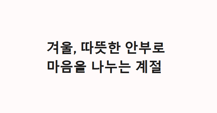 겨울은 건강과 안전에 대한 이슈가 끊이지 않는 계절입니다. 독감, 빙판길 낙상 사고, 한파주의보 등 걱정거리가 많기 때문입니다. 이때 건네는 안부 문자는 단순한 인사를 넘어 "당신의 안녕을 진심으로 기원합니다"라는 배려의 표현이 됩니다.