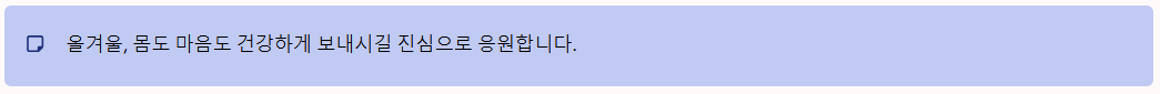 - "아직 바람은 차갑지만 햇살에서 제법 봄기운이 느껴집니다. 환절기 건강 유의하시고, 기분 좋은 일들만 가득한 2월 보내시길 바랍니다."