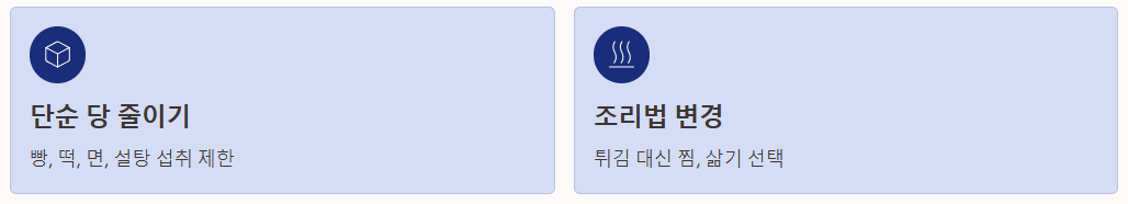 - 조리법 변경: 튀기거나 볶는 대신 찌거나 삶는 조리법을 선택하세요.