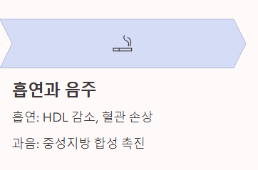 - 흡연과 음주: 흡연은 HDL을 낮추고 혈관 손상을 유발하며, 과도한 음주는 간에서 중성지방 합성을 촉진합니다.
