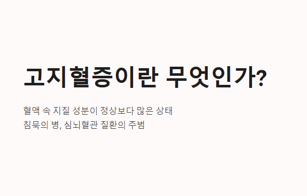 고지혈증을 반드시 치료하고 관리해야 하는 이유는 단지 콜레스테롤 수치 때문이 아니라, 이로 인해 발생하는 심뇌혈관 합병증 때문입니다.