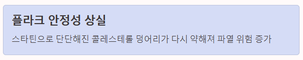 콜레스테롤 수치 재상승과 플라크 불안정화가 결합하면 심각한 결과를 초래합니다.