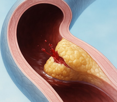 - 혈전 생성: 불안정한 플라크가 파열되면 이를 막기 위해 혈액이 응고(혈전 생성)됩니다.