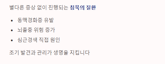 | 고위험군 | 경동맥 질환, 복부 대동맥류, 당뇨병, 만성 신장 질환 | 70 미만 |