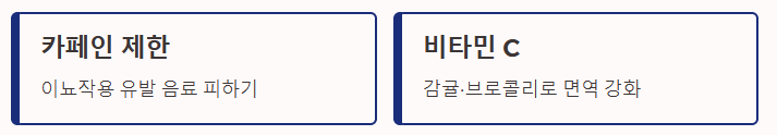 - 카페인(커피, 홍차): 이뇨 작용으로 체내 수분을 배출시켜 기관지를 건조하게 만듭니다.
