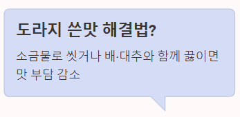Q2. 도라지를 쓴맛 때문에 먹기 힘든데 어떻게 하나요?
