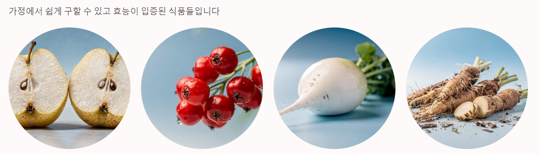 | 가래 기침 | 배, 도라지 | 거담 작용(가래 배출), 염증 완화 | 배도라지즙, 도라지 무침 |