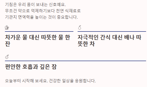 오늘부터는 차가운 물 대신 따뜻한 물 한 잔을, 자극적인 간식 대신 배나 따뜻한 차 한 잔을 곁에 두어 보세요. 작은 습관의 변화가 편안한 호흡과 깊은 잠을 되찾아 줄 것입니다.