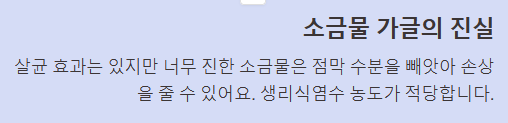 민간요법 중에는 잘못된 정보도 있습니다. 예를 들어 "소금물 가글"은 살균 효과가 있지만, 너무 진한 소금물은 오히려 점막의 수분을 뺏어 손상을 줄 수 있습니다. 생리식염수 농도 정도가 적당합니다.