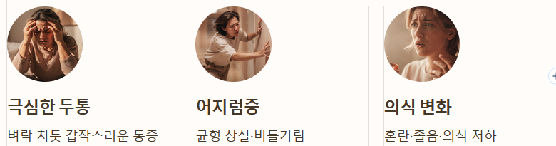 지금까지 경험해보지 못한, 망치로 맞은 듯한 극심한 두통이 갑자기 찾아옵니다. 뇌출혈의 주요 증상 중 하나입니다.