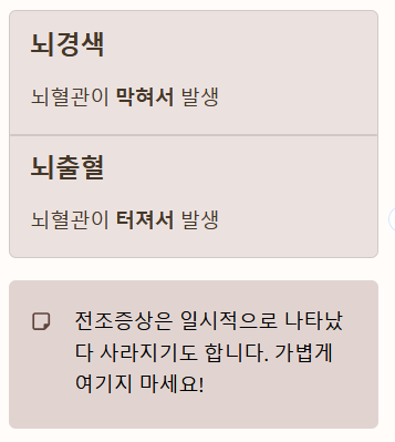 - "전조증상은 무조건 나타난다?"진실: 모든 뇌졸중 환자에게 전조증상이 나타나는 것은 아닙니다. 증상이 없더라도 평소 위험 인자 관리가 필수입니다.