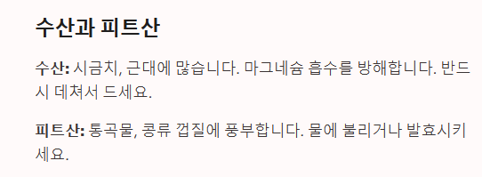 - 레몬즙, 식초 등의 유기산은 마그네슘의 용해도를 높여 흡수율을 개선합니다.