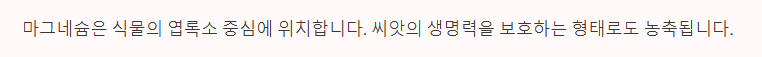 - 단백질은 마그네슘이 위장관에서 흡수될 때 킬레이트 형태로 결합하여 흡수를 돕습니다.
