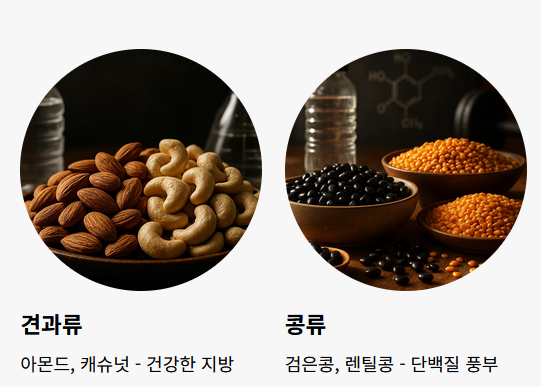 - 아몬드, 캐슈넛: 건강한 지방과 함께 마그네슘을 공급합니다.