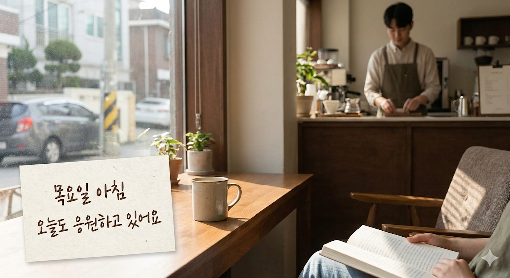 목요일 아침 인사는 단순한 안부 묻기를 넘어 '당신의 노고를 내가 알고 있다'는 공감의 표현이 됩니다. 주 중반을 넘어오며 방전된 에너지를 채워주는 역할을 톡톡히 합니다.