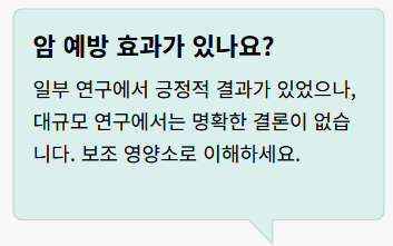 - 주의: 고용량 섭취는 출혈 위험을 높일 수 있음