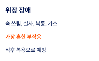 - 위장 장애: 속 쓰림, 설사, 복통, 가스 참 (가장 흔한 부작용)