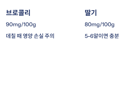 - 브로콜리: 약 90mg (데쳐 먹을 때 영양 손실 주의)