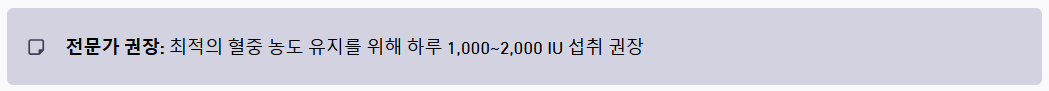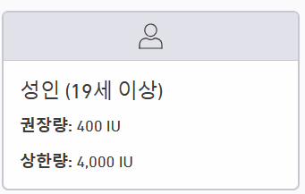 | 임산부 및 수유부 | 600 IU (15 µg) | 4,000 IU (100 µg) |