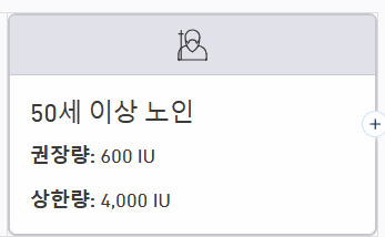 | 50세 이상 노인 | 600 IU (15 µg) | 4,000 IU (100 µg) |