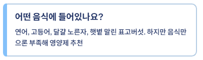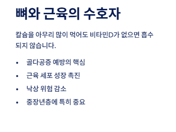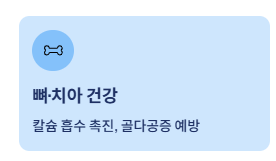 - 뼈·치아 건강: 칼슘 흡수를 돕고 골다공증 예방