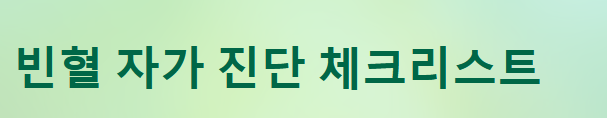 빈혈 자가 진단 체크리스트 (5개 이상 해당 시 전문의 상담 권장)