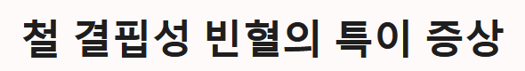 특히 철 결핍성 빈혈일 경우 나타나는 특이 증상들이 있습니다.