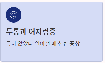 - 두통 및 어지럼증: 특히 앉았다 일어설 때 순간적으로 심한 어지럼증을 느끼는 경우가 흔합니다.