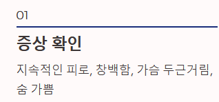 - 심폐계 증상: 숨 가쁨(호흡 곤란), 심장 박동 증가(가슴 두근거림).