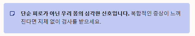 - 대표적인 전신 증상: 만성 피로와 무기력증, 집중력 저하.