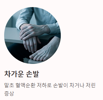 - 차가운 손발: 산소 공급이 원활하지 않아 말초 혈액순환이 저하되면서 손발이 차거나 저린 증상이 발생합니다.