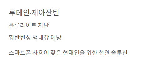 | 루테인/제아잔틴 | 안구 보호 | 눈 피로 개선, 시력 보호 |