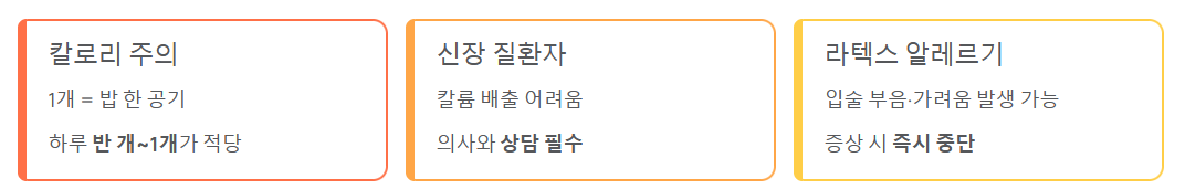 성인 기준으로 하루 반 개(1/2)에서 최대 1개 정도가 적당합니다. 그 이상 먹으면 설사를 유발하거나 체중이 증가할 수 있습니다.