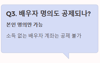 Q3. 배우자 명의로 넣어도 공제되나요? 아니요, 연금계좌 세액공제는 본인 명의 계좌에 납입한 금액만 해당됩니다. 소득이 없는 배우자 명의로 넣은 것은 남편(혹은 아내)이 공제받을 수 없습니다.