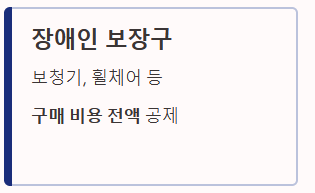 - 보청기, 휠체어 등 장애인 보장구: 구매 비용 전액