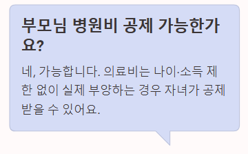 Q1. 시골에 계신 부모님 병원비를 제가 냈는데 공제되나요? 네, 가능합니다. 부모님과 따로 살아도 근로자가 실제 부양하고 있으며 생활비를 보태드리고 있다면 기본공제 대상자가 될 수 있습니다. 특히 의료비는 나이(60세 이상 여부)와 소득(연 100만 원 이하 여부) 제한을 받지 않으므로, 소득이 있는 부모님의 병원비를 자녀가 결제했다면 자녀가 공제받을 수 있습니다.
