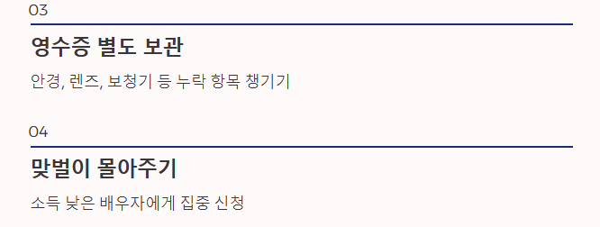 특히 안경, 렌즈, 보청기 구입 비용은 간소화 자료에서 누락되기 쉬우니 영수증을 꼭 확인하세요. 마지막으로 실손보험금 수령액은 반드시 차감하여 추후 세금 폭탄을 맞는 일이 없도록 주의하시기 바랍니다.