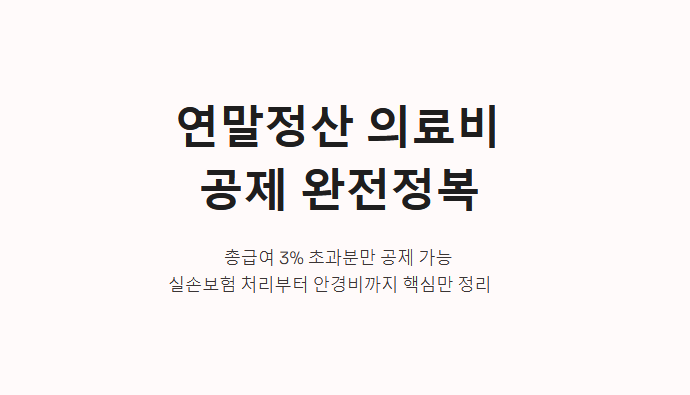 연말정산 의료비 공제는 "총급여의 3% 초과"라는 조건 때문에 건강한 직장인은 받기 어려운 항목일 수 있습니다. 하지만 부양가족의 병원비까지 합산할 수 있고, 소득이 낮은 배우자에게 몰아줄 수 있다는 점을 활용하면 의외의 환급금이 발생할 수 있습니다.