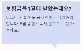 - 특이사항: 나이와 소득 요건을 따지지 않습니다. (부양가족의 소득이 많아도, 내가 부양가족의 병원비를 냈다면 공제 가능)