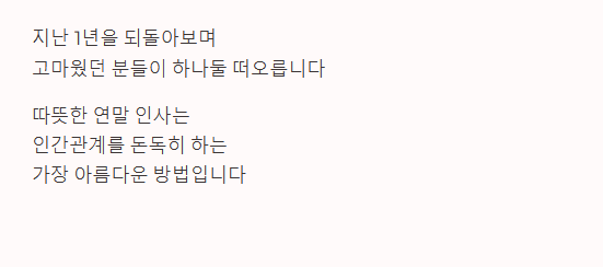 12월의 끝자락에 서면 지난 1년을 되돌아보며 고마웠던 분들이 하나둘 떠오릅니다. 한 해 동안 베풀어주신 은혜에 감사를 표하고, 다가올 새해의 안녕을 비는 연말 인사는 인간관계를 돈독히 하는 가장 따뜻한 방법입니다.