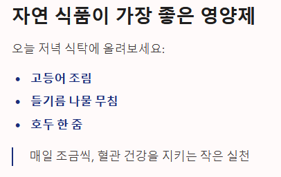 영양제도 좋지만, 자연 식품을 통해 섭취하면 오메가3뿐만 아니라 양질의 단백질, 비타민, 미네랄을 함께 얻을 수 있어 건강에 훨씬 이롭습니다. 오늘 알려드린 식품 리스트와 조리법을 기억하시고, 매일 조금씩 혈관 건강을 챙기시기 바랍니다.