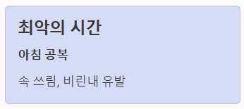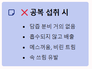 - 최악의 시간: 아침 공복 (속 쓰림, 비린내 유발)