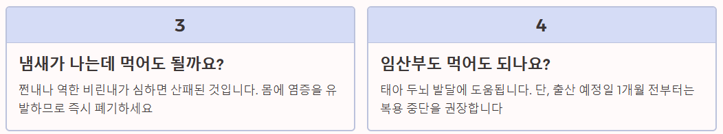 Q4. 임산부도 먹어도 되나요? 네, 태아의 두뇌 발달에 도움이 됩니다. 단, 출산 시 지혈 문제를 예방하기 위해 출산 예정일 1개월 전부터는 복용을 잠시 중단하거나 식물성 오메가3로 바꾸는 것을 권장합니다.