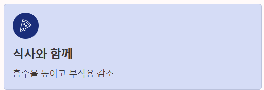 - 식사 직후나 식사 중에 먹으면 흡수율은 높이고 위장 장애는 줄일 수 있습니다.