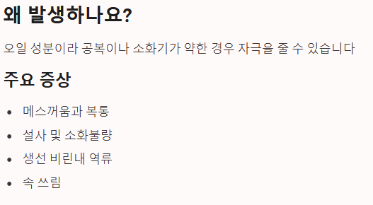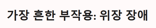 - 가장 흔한 부작용은 소화불량, 비린내 트림, 설사 등 위장 장애입니다.