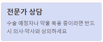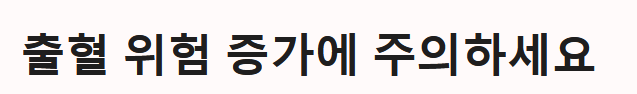 | 수술 예정자 | 수술 중 지혈이 안 될 수 있으므로 수술 1~2주 전부터 섭취 중단 필수 |