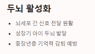 - 두뇌 발달: 뇌세포를 활성화하여 기억력 개선과 치매 예방에 도움을 줍니다.