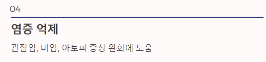 만성 염증은 만병의 근원입니다. 오메가3는 체내 염증 유발 물질을 억제하는 항염 효과가 있어 류머티즘 관절염, 비염, 아토피 피부염 등의 증상 완화에 도움을 줄 수 있습니다.